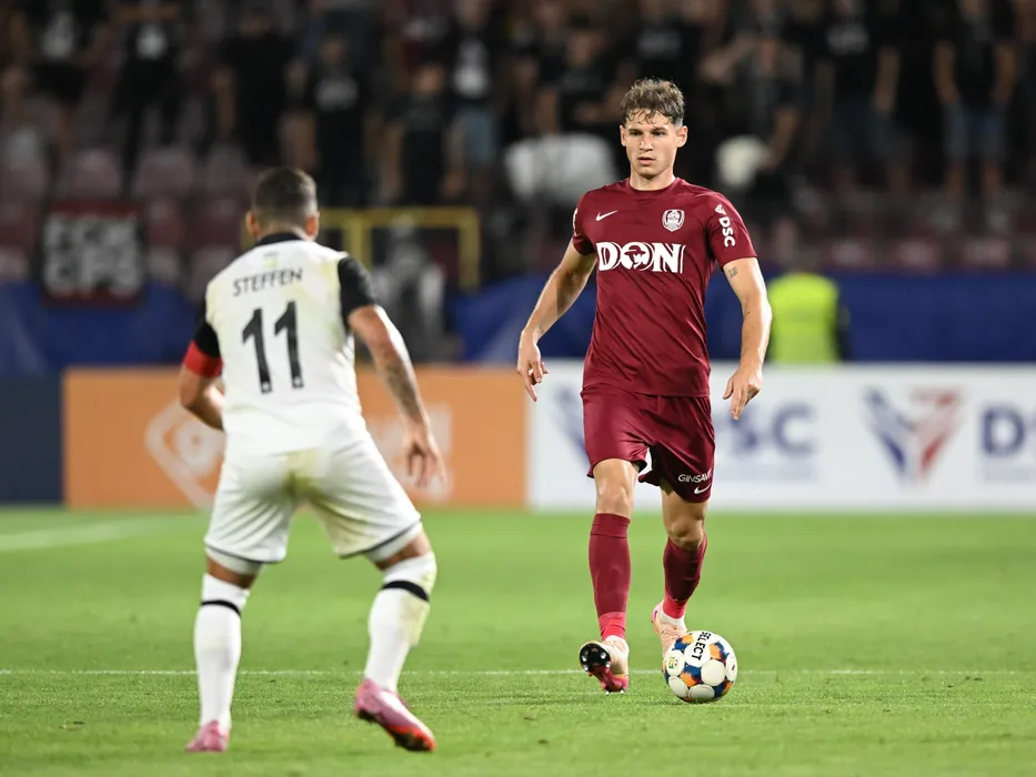 Matei Christian Ilie in meciul de fotbal dintre FC CFR 1907 Cluj si FC Lugano, contand pentru UEFA League al doilea tur preliminar, desfasurat pe Stadionul Dr. Constantin Rădulescu din Cluj-Napoca, joi 31 iulie 2025. © FOTO: Flaviu Buboi/SPORT PICTURES