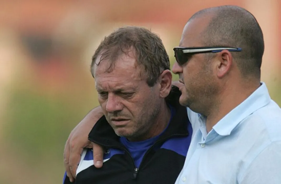 Finantatorul echipei Universitatea Craiova, Adrian Mititelu (D) si Ilie Balaci, manager general, discuta pe stadionul Ion Oblemenco din Craiova, luni, 21 august 2007. DARIUS MITRACHE / MEDIAFAX FOTO