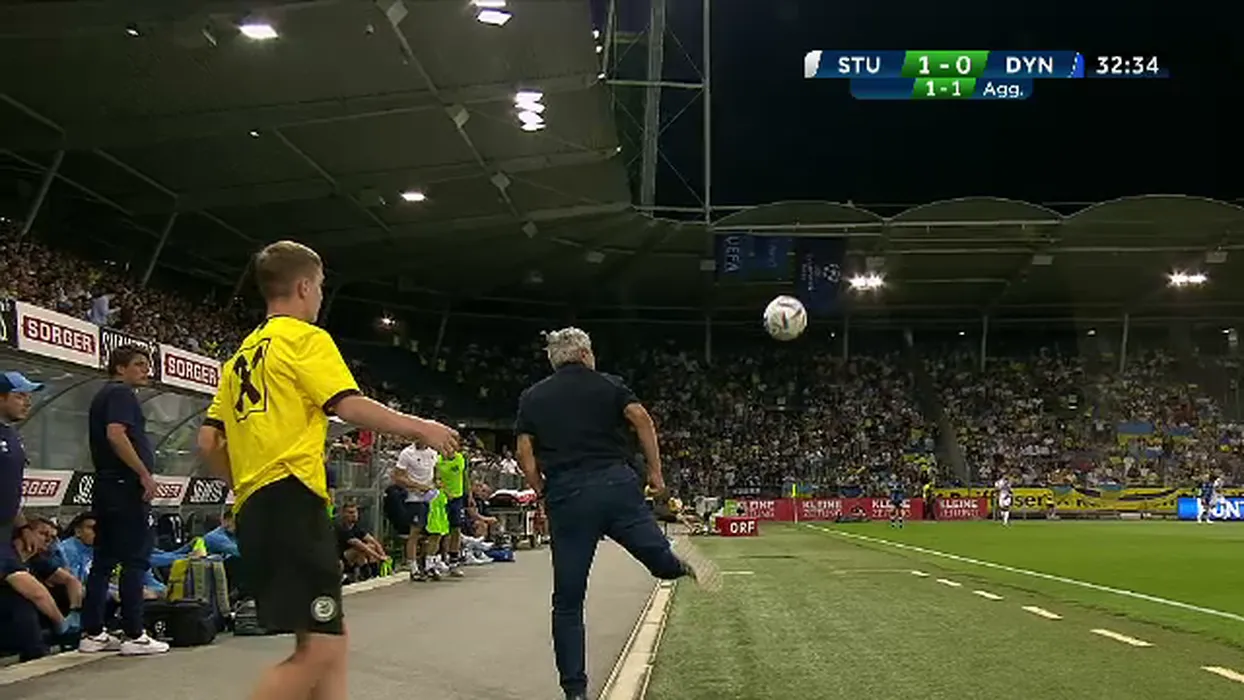 Mircea Lucescu, fază genială la meciul dintre Sturm Graz și Dinamo Kiev! A făcut o preluare perfectă la marginea terenului și a fost aplaudat | FOTO