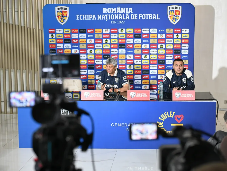 Mircea Lucescu alaturi de camerele video la conferinta de presa de dinaintea meciului impotriva San Marino, contand pentru Preliminariile Campionatului Mondial 2026, desfasurata la Muse Country Club din Mogosoaia, luni 17 noiembrie 2025. © FOTO:Razvan Pasarica/SPORT PICTURES