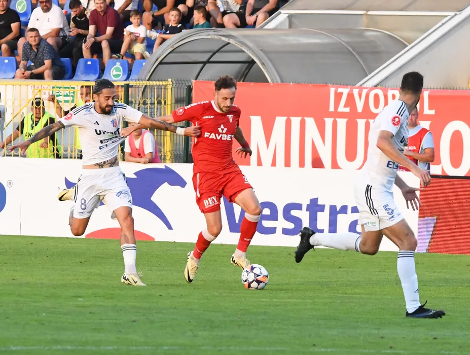 Răzvan Alin Trif și Eduard Marian Florescu în meciul de fotbal dintre FC Botoșani și UTA Arad, contând pentru Superliga Superbet, desfășurat pe Stadionul Municipal din Botoșani, sâmbătă 17 august 2024. © FOTO: Tudi/SPORT PICTURES