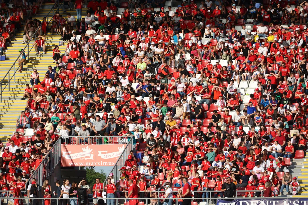 Copii arădeni își încurajează favoriții în meciul de fotbal dintre UTA Arad si AFC Hermannstadt Sibiu, contând pentru Superliga Superbet Play-Out, desfășurat pe Arena Francisc Neuman din Arad, vineri 12 aprilie 2024. © FOTO: Ciprian PETCUȚ/SPORT PICTURES
