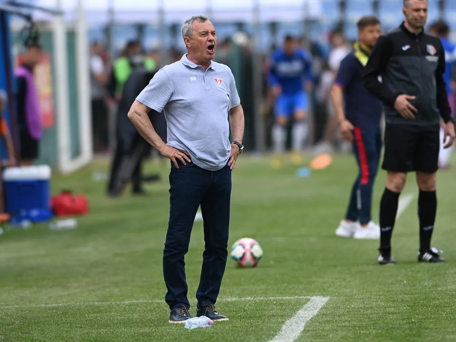 Mircea Rednic reactioneaza in meciul de fotbal dintre Gloria Buzau si UTA Arad, contand pentru mansa tur a barajului pentru promovarea in Superliga Superbet, desfasurat pe Stadionul Gloria din Buzau, duminica 28 mai 2023. © FOTO:Razvan Pasarica/SPORT PICTURES