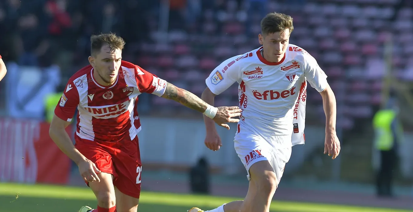 Deian Cristian Sorescu si Damian Daniel Isac in meciul de fotbal dintre Dinamo Bucuresti si UTA Arad, contand pentru Liga 1 Casa Pariurilor, desfasurat pe Stadionul Dinamo din Bucuresti, sambata 2 octombrie 2021. © FOTO:Razvan Pasarica/SPORT PICTURES