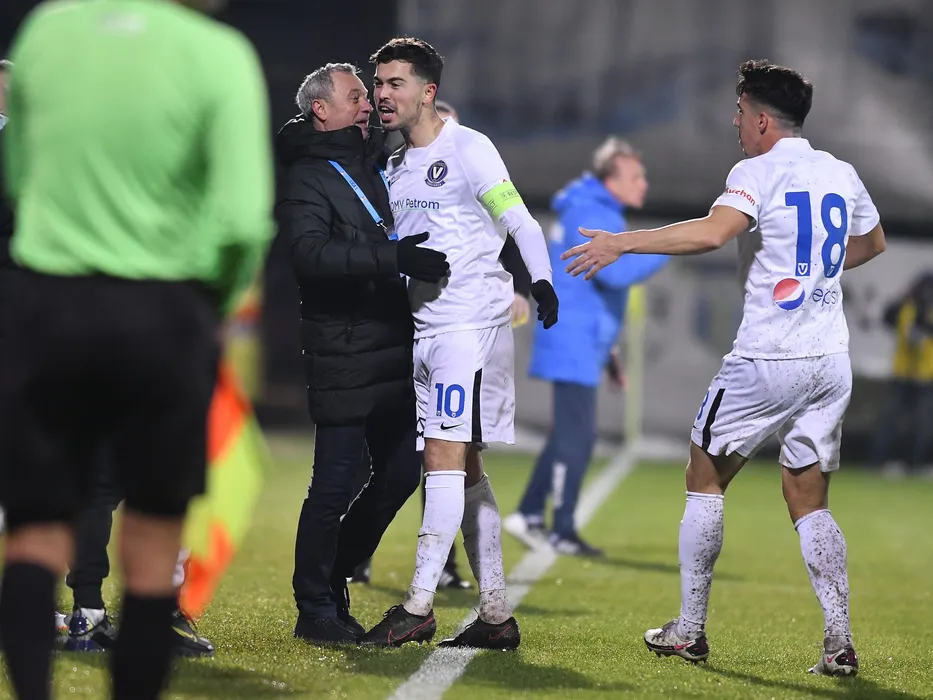 Gabriel Cristian Iancu se bucura dupa un gol marcat alaturi de noul sau antrenor Mircea Rednic si Andrei Viorel Artean in meciul de fotbal dintre Chindia Targoviste si Viitorul Constanta, contand pentru Liga 1 Casa Pariurilor, desfasurat pe Stadionul Marin Anastasovici din Giurgiu, sambata 12 decembrie 2020. © FOTO:Razvan Pasarica/SPORT PICTURES