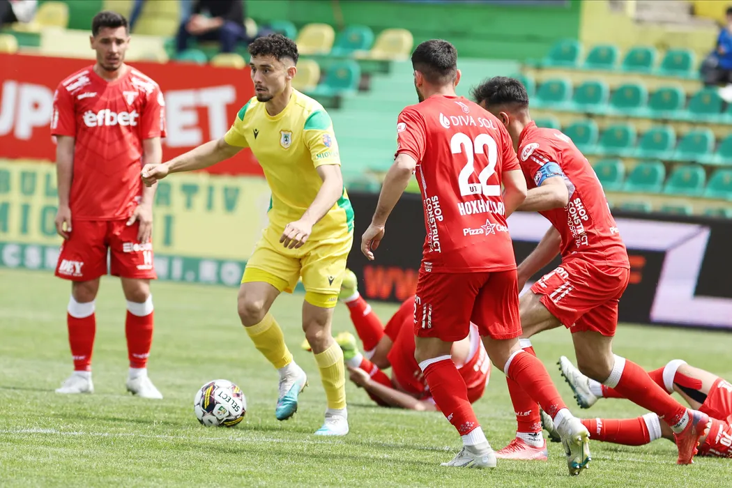 Meciul de fotbal dintre CS Mioveni si UTA Arad, contand pentru Play-out-ul Superligii Superbet, desfasurat pe Stadionul Orasenesc din Mioveni, duminica 14 mai 2023. © FOTO:Gheorghe Fluster/SPORT PICTURES