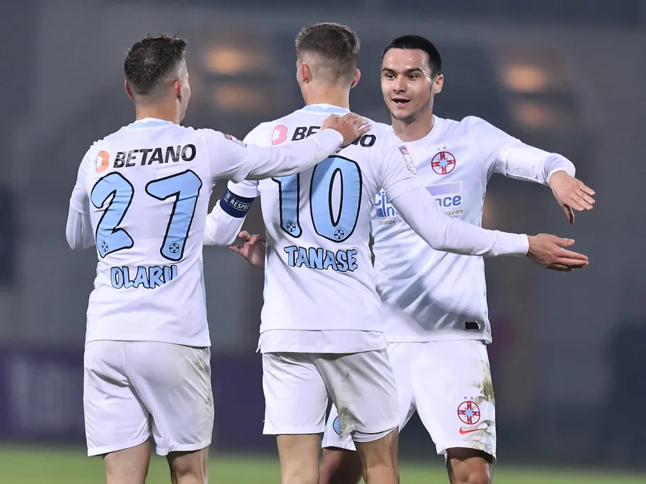 Adrian Gheorghe Sut il felicita pe Florin Lucian Tanase dupa un gol marcat in meciul de fotbal dintre Chindia Targoviste si FCSB, contand pentru Liga 1 Casa Pariurilor, desfasurat pe Stadionul Marin Anastasovici din Giurgiu, luni 2 noiembrie 2020. © FOTO:Razvan Pasarica/SPORT PICTURES