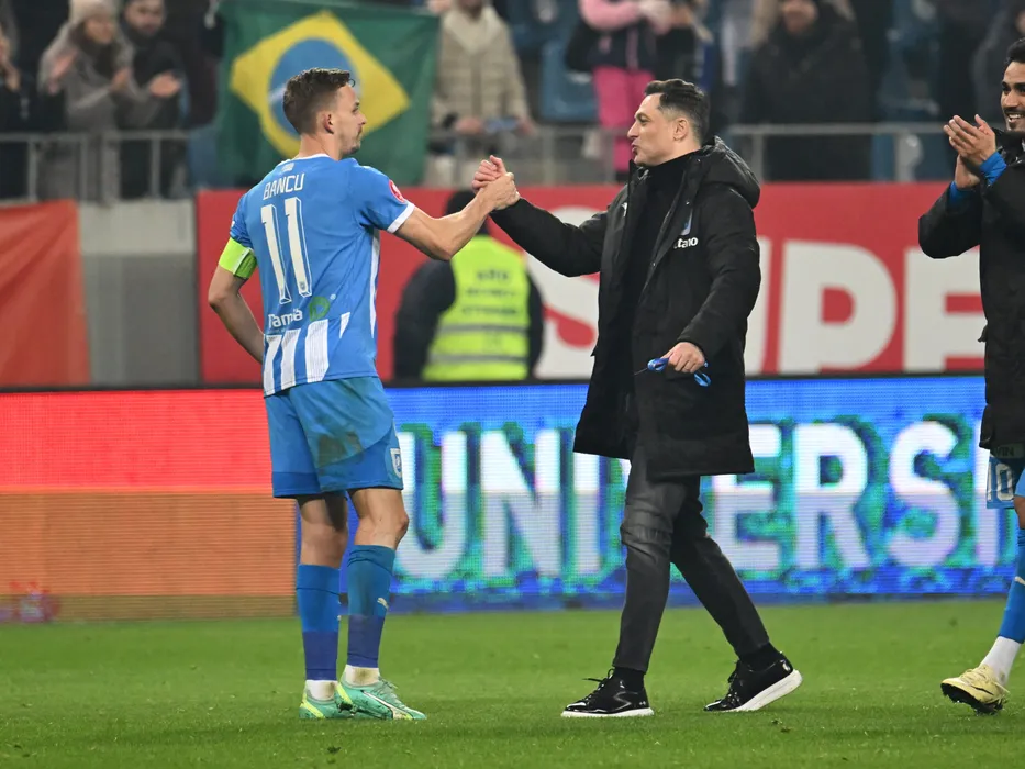 Mirel Matei Radoi il felicita pe Nicușor Silviu Bancu dupa meciul dintre Universitatea Craiova si Universitatea Cluj, contand pentru Superliga Superbet, desfasurat pe Stadionul Ion Oblemenco din Craiova, miercuri 5 februarie 2025. © FOTO:Razvan Pasarica/SPORT PICTURES