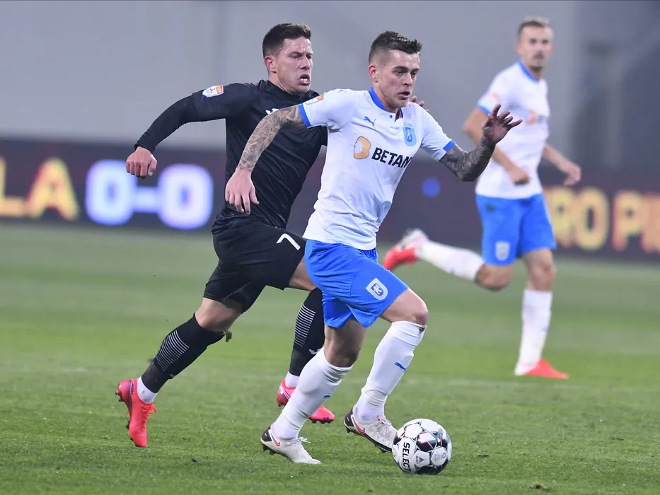 Ionut Petrisor Petrescu si Alexandru Cicaldau in meciul de fotbal dintre Universitatea Craiova si Academica Clinceni, contand pentru Liga 1 Casa Pariurilor, desfasurat fara spectatori pe Stadionul Ion Oblemenco din Craiova, vineri 23 octombrie 2020. © FOTO:Razvan Pasarica/SPORT PICTURES