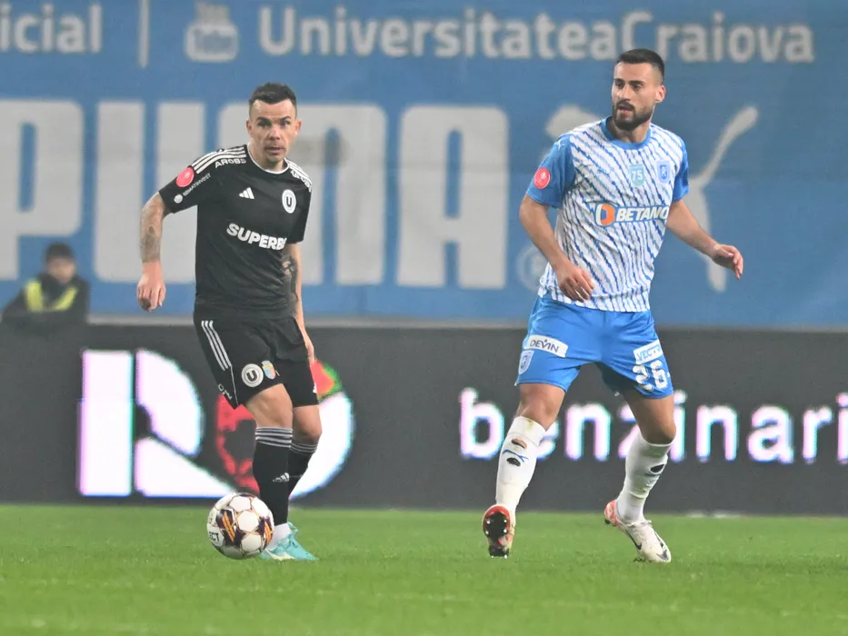 Dan Nicolae Nistor si Gjoko Zajkov în meciul de fotbal dintre Universitatea Craiova si Universitatea Cluj, contând pentru Superliga Superbet, desfășurat pe Stadionul Ion Oblemenco din Craiova, vineri 9 februarie 2024. © FOTO: Răzvan PĂSĂRICĂ/SPORT PICTURES