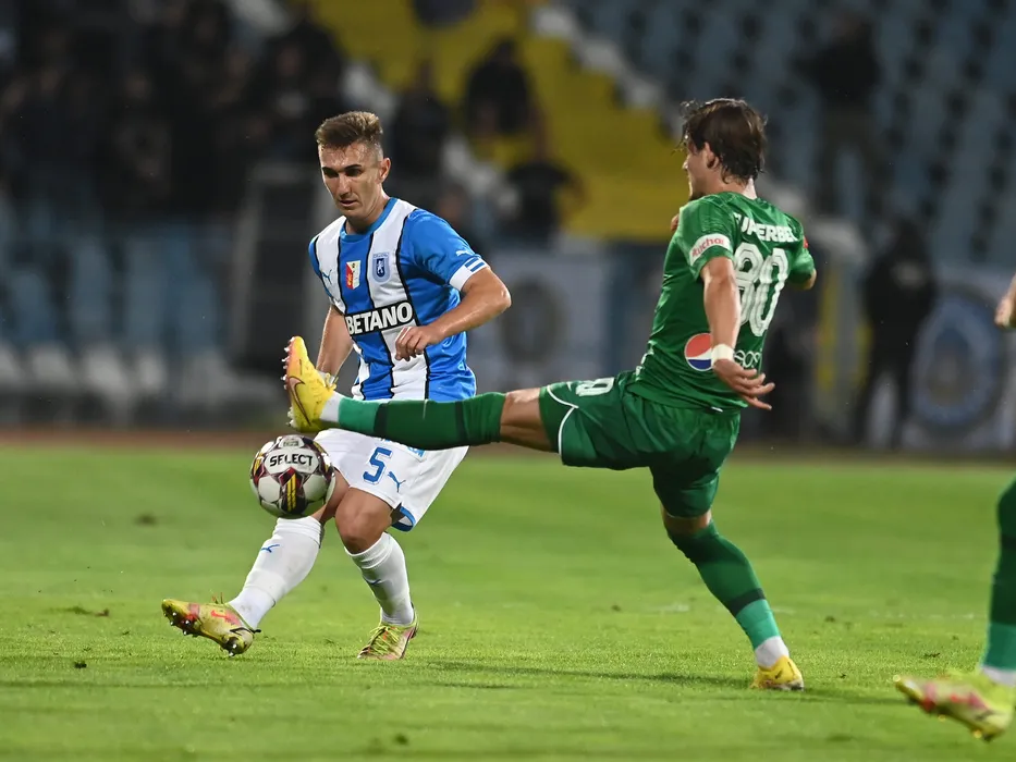 Bogdan Ilie Vatajelu si Alexi Paul Pitu in meciul de fotbal dintre Universitatea Craiova si Farul Constanta, contand pentru Superliga Superbet, desfasurat pe Stadionul Municipal din Drobeta Turnu Severin, luni 5 septembrie 2022. © FOTO:Razvan Pasarica/SPORT PICTURES