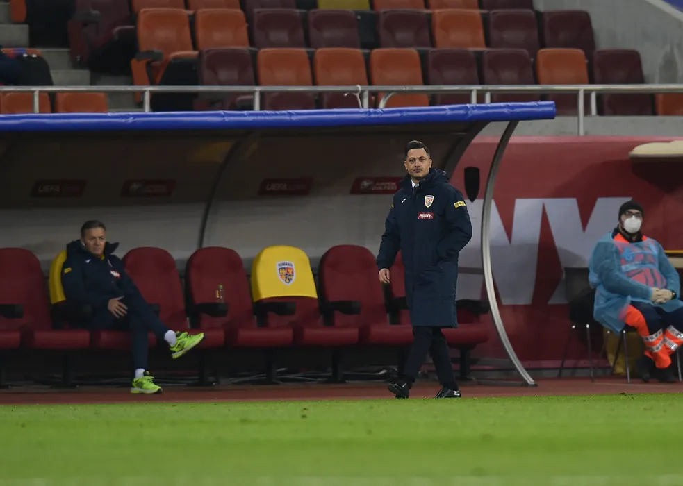 Mirel Rădoi s-a „lepădat” de COVID-19! Selecționerul a rezistat doar câteva secunde fără mască, în meciul cu Macedonia de Nord | FOTO