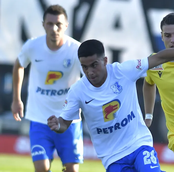 Daniel Marian Toma si Enes Sali in meciul de fotbal dintre Farul Constanta si CS Mioveni, contand pentru Liga 1 Casa Pariurilor, desfasurat pe Stadionul central al Academiei Gheorghe Hagi din Ovidiu, duminica 26 septembrie 2021. © FOTO:Razvan Pasarica/SPORT PICTURES