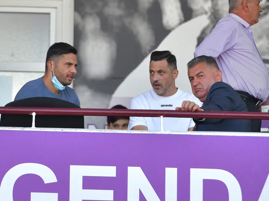 Nicolae Dica si Mirel Radoi asista din tribuna la meciul de fotbal dintre FC Arges si FC U Craiova, contand pentru Liga 1 Casa Pariurilor, desfasurat pe Stadionul Nicolae Dobrin din Pitesti, sambata 11 septembrie 2021. © FOTO:Razvan Pasarica/SPORT PICTURES