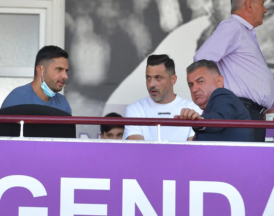 Nicolae Dica si Mirel Radoi asista din tribuna la meciul de fotbal dintre FC Arges si FC U Craiova, contand pentru Liga 1 Casa Pariurilor, desfasurat pe Stadionul Nicolae Dobrin din Pitesti, sambata 11 septembrie 2021. © FOTO:Razvan Pasarica/SPORT PICTURES