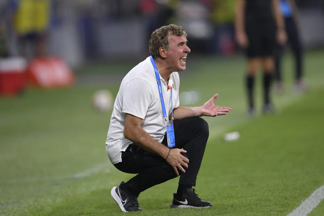 Gheorghe Hagi, antrenorul echipei Farul Constanta, urmareste meciul de fotbal contra formatiei FCSB din etapa 5 a Superligii, disputat pe stadionul Steaua din Bucuresti, vineri, 9 august 2024. ALEXANDRU DOBRE / MEDIAFAX FOTO