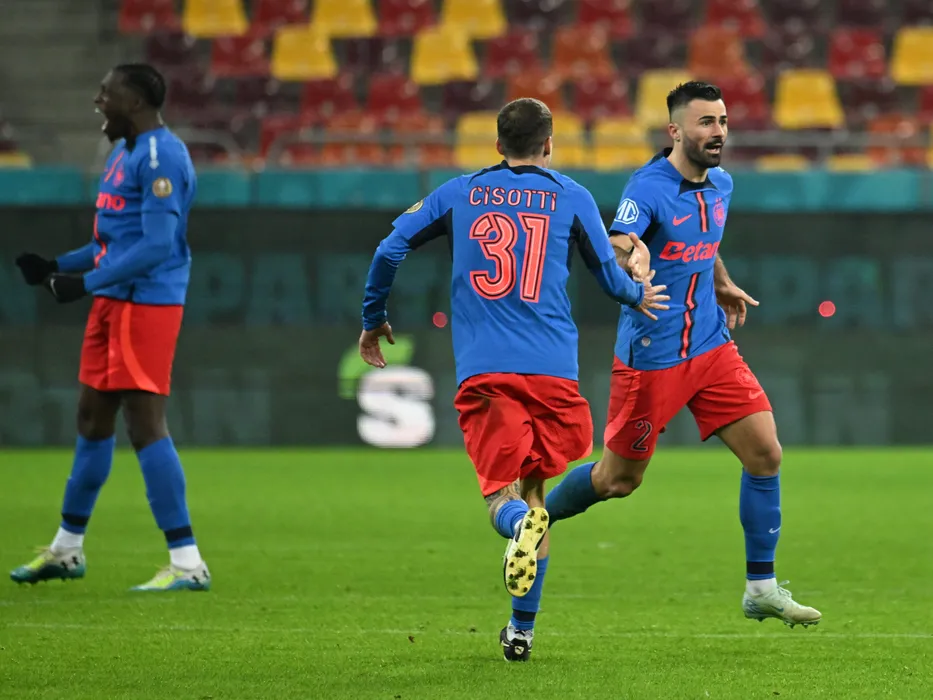 Valentin Cretu se bucură dupa un gol marcat alături de Juri Cisotti in meciul de fotbal dintre FCSB si FC Hermannstadt, din cadrul Superligii Superbet, desfasurat pe Arena Nationala din Bucuresti, vineri 17 ianuarie 2025. © FOTO:Razvan Pasarica/SPORT PICTURES