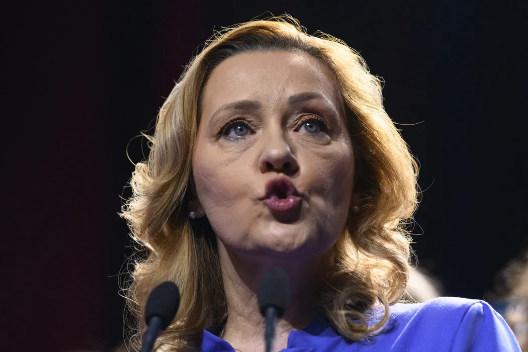 Candidatul USR, calificat in al doilea tur al alegerilor prezidentiale, Elena Lasconi, sustine o conferinta de presa in Bucuresti, luni, 25 noiembrie 2024. ALEXANDRU DOBRE/ MEDIAFAX FOTO.