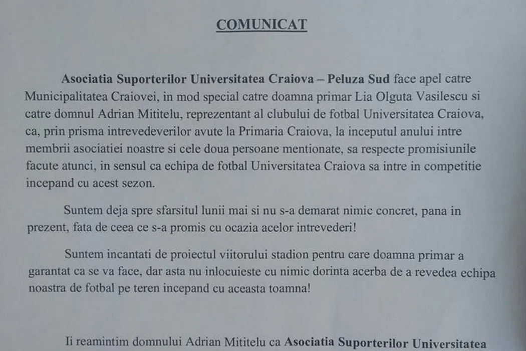 Mititelu, somat de suporteri să înscrie Universitatea în sezonul care urmează