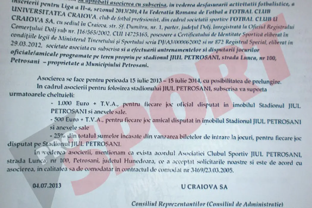 Mititelu va plăti 1.000 de euro chirie pentru fiecare meci disputat de U Craiova la Petroșani. FOTO