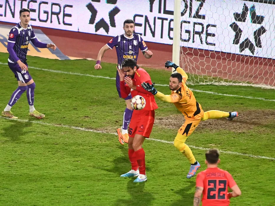 Mario Zebic, Grigore Ioan Turda, Andrea Compagno si Catalin George Straton in meciul de fotbal dintre FC Arges si FCSB, contand pentru Superliga Superbet, desfasurat pe Stadionul Nicolae Dobrin din Pitesti, duminica 26 februarie 2023. © FOTO:Razvan Pasarica/SPORT PICTURES