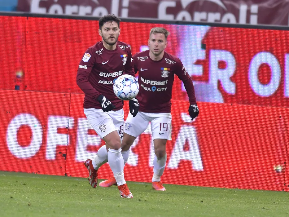 Alexandru Ionita si Philippe Razvan Onea in meciul de fotbal dintre Rapid Bucuresti si UTA Arad, contand pentru Liga 1 Casa Pariurilor, desfasurat pe Arena Nationala din Bucuresti, sambata 29 ianuarie 2022. © FOTO:Razvan Pasarica/SPORT PICTURES
