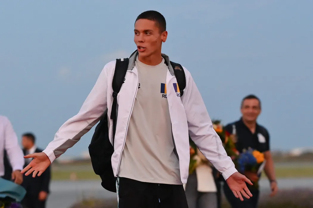 Inotatorul David Popovici este intampinat de apropiati si oficiali la sosirea sa pe Aeroportul Henri Coanda din Bucuresti, duminica, 26 iunie 2022. David Popovici este noul campion mondial la 100 și la 200 m liber, dupa participarea sa la Campionatul Mondial de Natatie de la Budapesta. EDUARD VINATORU / MEDIAFAX FOTO