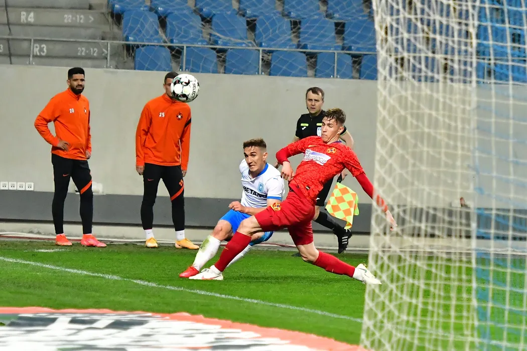 Bogdan Vatajelu (S) in meciul de fotbal dintre echipele U Craiova - FCS Bucuresti disputat pe stadionul Ion Oblemenco din Craiova joi 29 aprilie 2021 . REMUS BADEA / MEDIAFAX FOTO