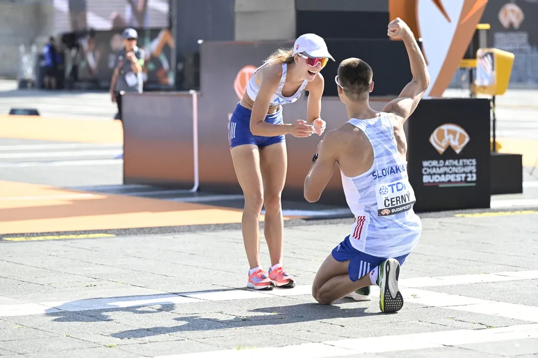 Moment de uluială la Campionatul Mondial. Atletul s-a pus în genunchi la linia de finish și și-a cerut iubita, atletă și ea, de soție!