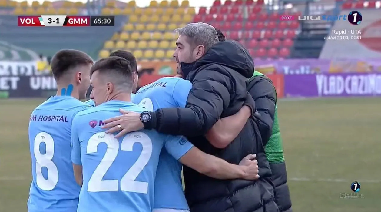 Moment emoționant în FC Voluntari – Gaz Metan Mediaș! Denis Ciobotariu a marcat pentru echipa antrenată de către tatăl său! Cum au reacționat cei doi | FOTO & VIDEO