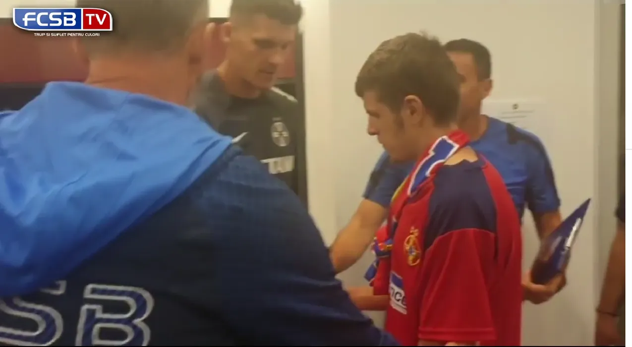 Moment emoționant în vestiarul FCSB! Cum a fost primit suporterul nevăzător de vedetele lui Gigi Becali | VIDEO