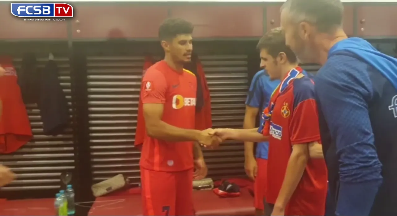 Moment emoționant în vestiarul FCSB! Cum a fost primit suporterul nevăzător de vedetele lui Gigi Becali | VIDEO