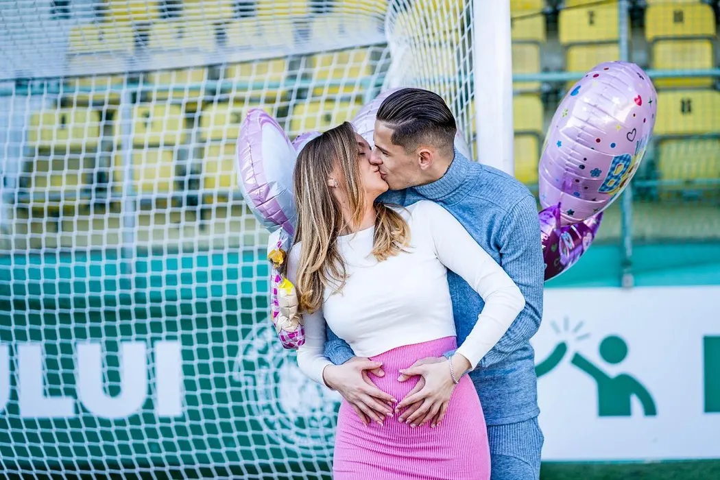 Moment emoționant pe „Ion Oblemenco”! Alex Cîmpanu și-a cerut iubita în căsătorie după victoria cu Petrolul! Cum a reacționat Denisa, tânăra care i-a dăruit o fetiță fotbalistului din Bănie | VIDEO & FOTO