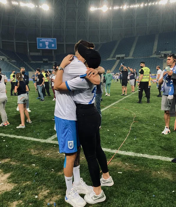 Moment emoționant pe „Ion Oblemenco”! Alex Cîmpanu și-a cerut iubita în căsătorie după victoria cu Petrolul! Cum a reacționat Denisa, tânăra care i-a dăruit o fetiță fotbalistului din Bănie | VIDEO & FOTO