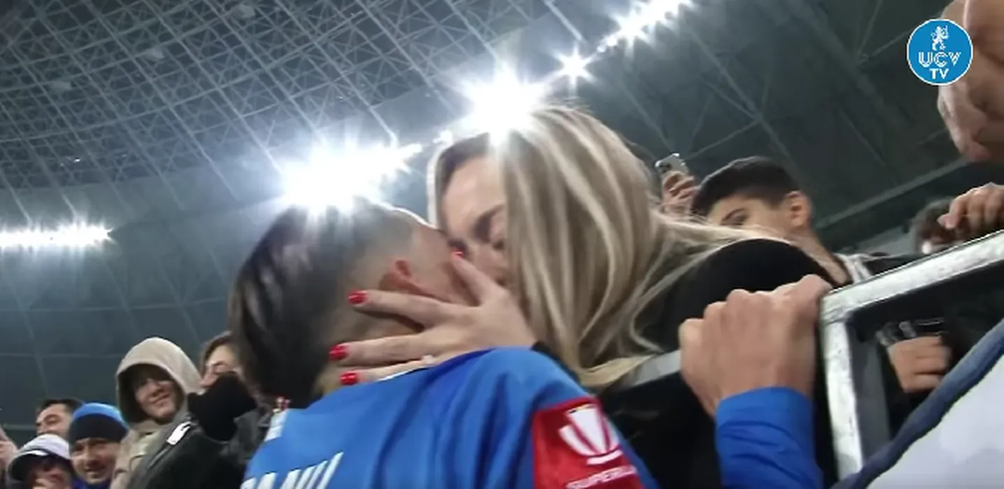 Moment emoționant pe „Ion Oblemenco”! Alex Cîmpanu și-a cerut iubita în căsătorie după victoria cu Petrolul! Cum a reacționat Denisa, tânăra care i-a dăruit o fetiță fotbalistului din Bănie | VIDEO & FOTO