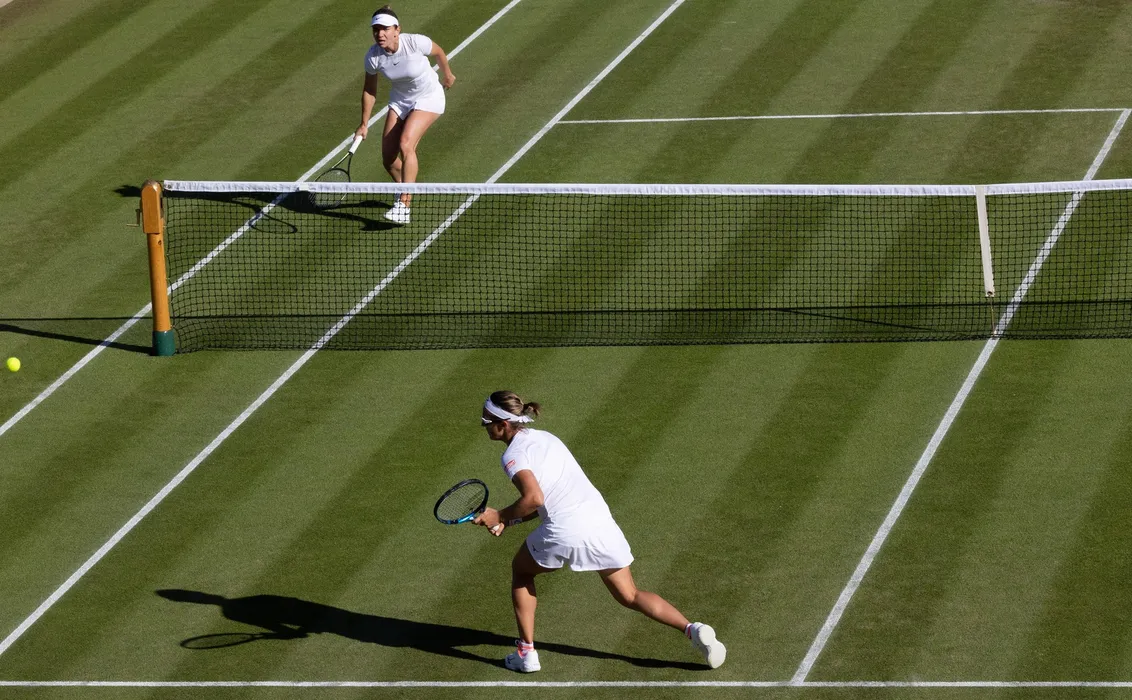 Romanian Simona Halep and Belgian Kirsten Flipkens pictured during a second round game in the women's singles tournament between Belgian Flipkens (WTA190) and Romanian Halep (WTA18) at the 2022 Wimbledon grand slam tennis tournament at the All England Tennis Club, in south-west London, Britain, Thursday 30 June 2022. BELGA PHOTO BENOIT DOPPAGNE,Image: 704151311, License: Rights-managed, Restrictions: *** World Rights Except Belgium and France ***, Model Release: no, Credit line: Profimedia