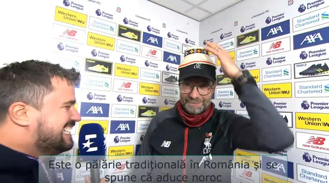 Moment inedit după Liverpool – Manchester City 3-1. VIDEO | Jurgen Klopp a primit o pălărie tradițională din Maramureș: „Cum spun ‘mulțumesc’ în română?”