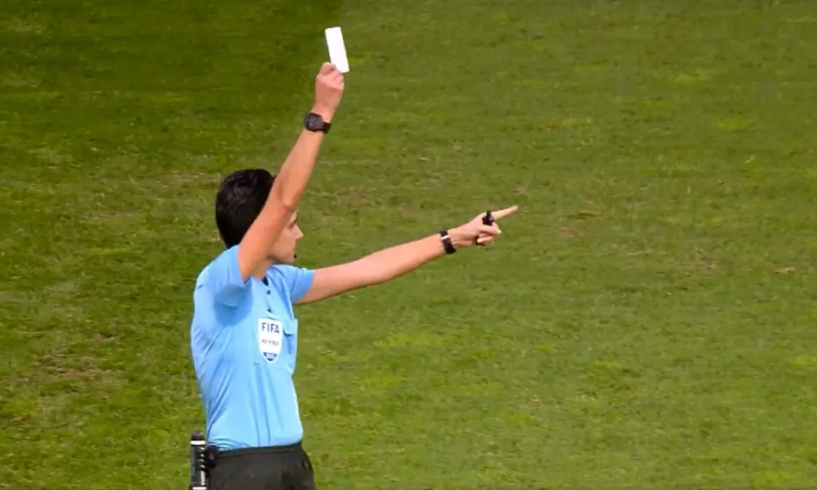 Moment istoric: arbitrul a arătat cartonașul alb într-un meci oficial! Ce înseamnă, conform regulamentului, și ce au făcut fanii din tribună când au văzut gestul