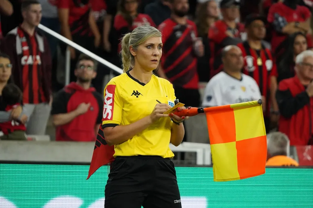 CURITIBA, PR - 17.08.2022: ATLETICO VS FLAMENGO - Auxiliary Neuza Ines Back during Athletico x Flamengo match for the Quarter Finals of the Copa do Brasil, held at Estádio Joaquim Américo Guimarăes in Curitiba, PR. (Photo: Carlos Pereyra/Fotoarena/Sipa USA),Image: 714760851, License: Rights-managed, Restrictions: *** Brazil Out ***, Model Release: no