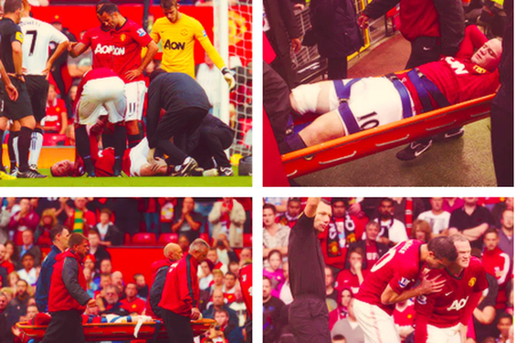 Moment șocant pe Old Trafford! FOTO** Nu te uita dacă nu ești tare de inimă! Coapsa lui Wayne Rooney a fost crestată de un adversar