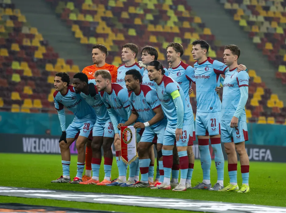 Fotbalistii olandezi la o fotografie de grup realizata inaintea meciului de fotbal dintre FCSB si Feyenoord Rotterdam, contand pentru UEFA Europa League, desfasurat la Arena Nationala din Bucuresti, joi 11 decembrie 2025. © FOTO:Raed Krishan/SPORT PICTURES