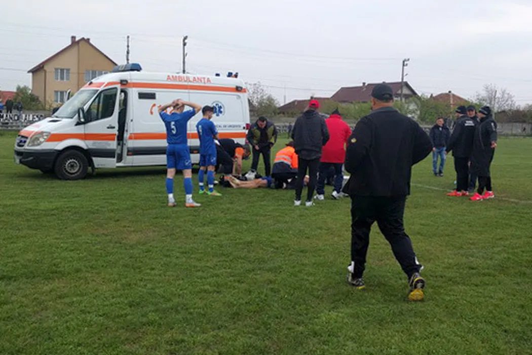 Momente de groază la un meci din România: „Zi-le să oprească meciul că mi-e rău!” Apoi, a picat pe teren. Un episod incredibil cu un jucător de 24 de ani. Filmul evenimentelor: stopul, medicul, paramedicul, ambulanța, poarta închisă, omul cu flexul, accidentul