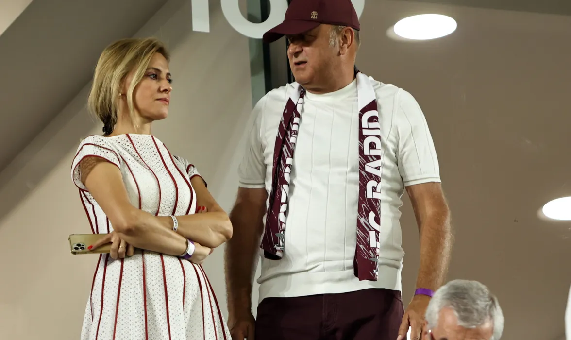 Diana si Dan Sucu urmaresc meciul de fotbal dintre echipele Rapid si UTA Arad, din etapa a VI-a a Superligii, disputat pe stadionul Rapid- Giulesti din Bucuresti, sambata, 20 august 2022. GEORGE FILIP / MEDIAFAX FOTO