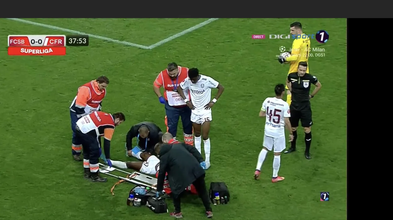 Momente horror pe Arena Națională, în prima repriză din FCSB – CFR Cluj! Christopher Braun a fost faultat de coechipierul Kolinger și a căzut în cap, rămânând inert pentru câteva momente! | VIDEO