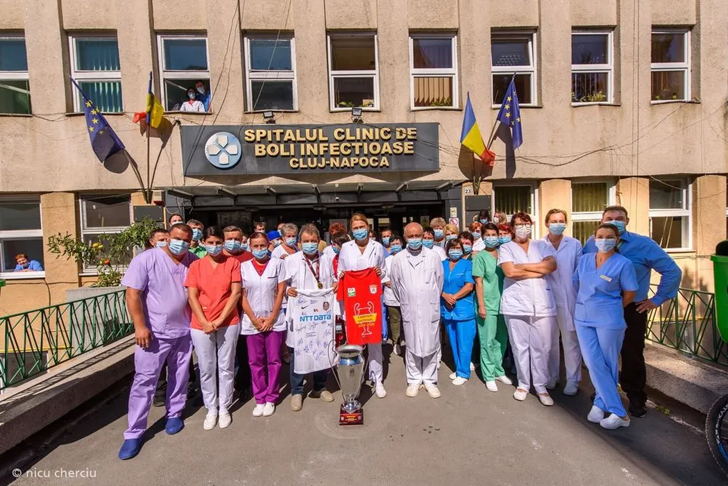 Momente superbe la Cluj. Dan Petrescu și jucătorii campioanei le-au mulțumit medicilor care i-au scăpat de coronavirus. „Sunteţi eroii nevăzuţi ai României” | VIDEO & FOTO