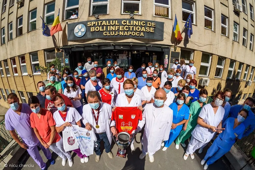 Momente superbe la Cluj. Dan Petrescu și jucătorii campioanei le-au mulțumit medicilor care i-au scăpat de coronavirus. „Sunteţi eroii nevăzuţi ai României” | VIDEO & FOTO