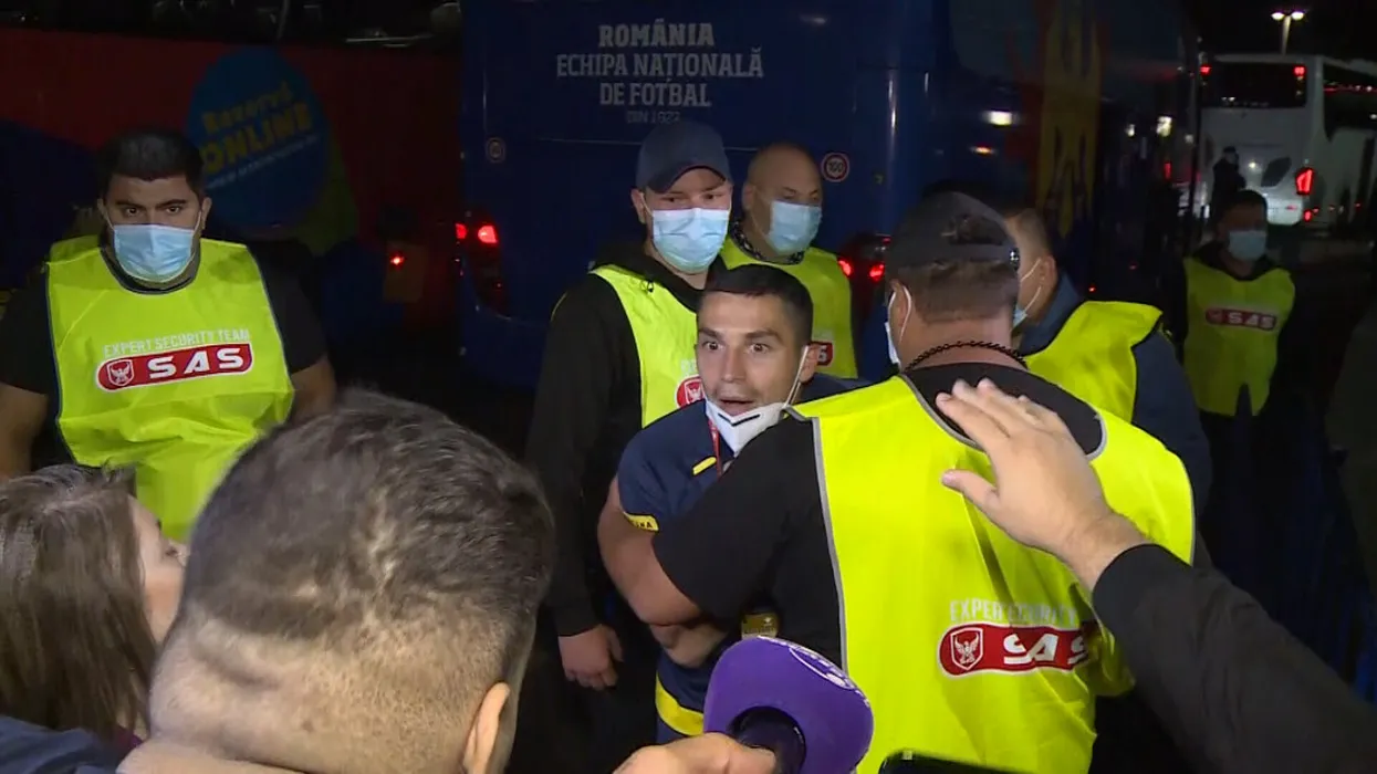 Nicolae Stanciu încercând să le dea explicații fanilor după momentele tensionate care au apărut după România - Liechtenstein 2-0. Sursă foto: Digisport