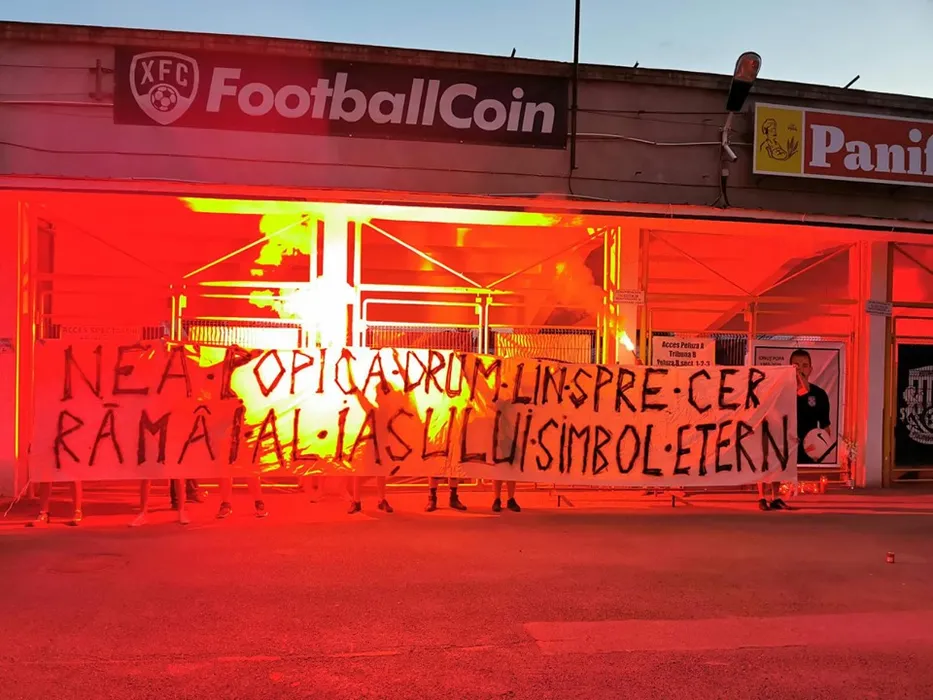 Momente tulburătoare la stadionul din Copou, transformat în altar. Suporterii i-au adus un ultim omagiu lui Ionuț Popa: „Nea Popică, drum lin spre cer. Rămâi al Iașiului simbol etern”