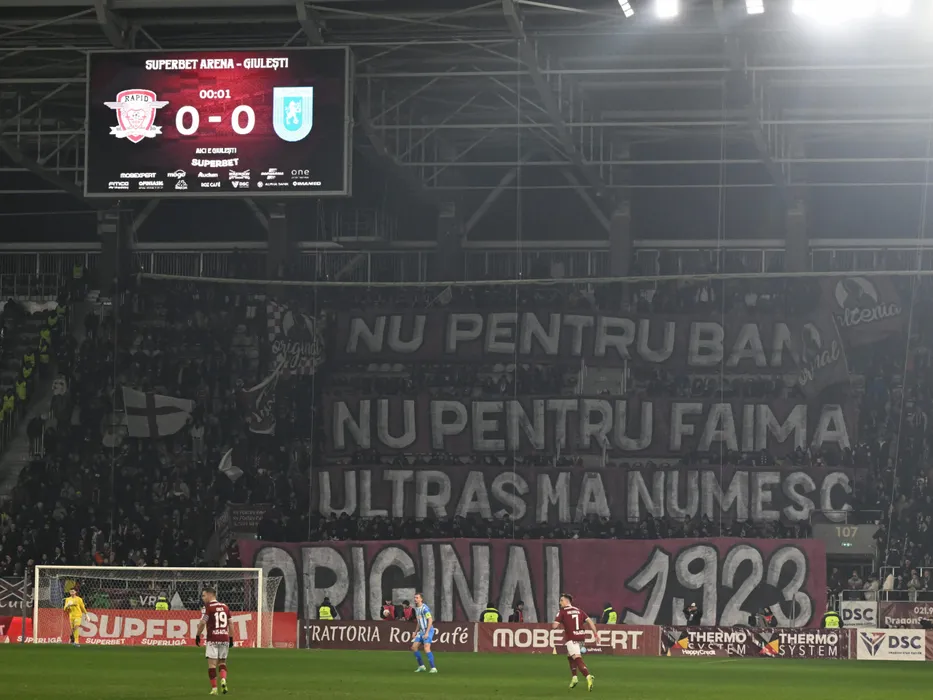 Coregrafie rapidista prezentata in peluza la meciul de fotbal dintre Rapid Bucuresti si Universitatea Craiova, din cadrul Superligii Superbet, desfasurat pe Superbet Arena-Giulesti din Bucuresti, sambata 25 ianuarie 2025. © FOTO:Razvan Pasarica/SPORT PICTURES