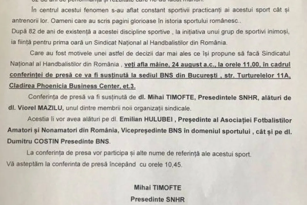 Momentul pe care-l așteaptau mulți handbaliști din țară: Apare primul organism care se va lupta pentru drepturile lor!